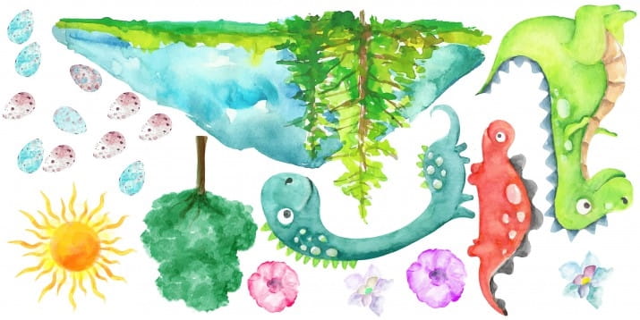 Naklejki dla dzieci na ścianę zwierzątka dinozaury