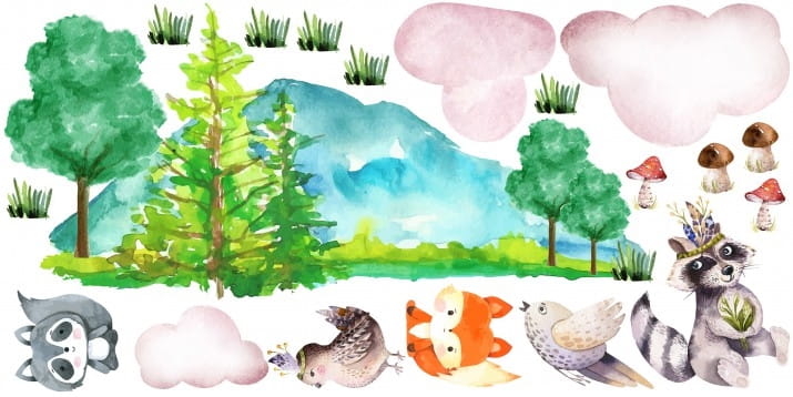 Naklejki dla dzieci na ścianę zwierzątka drzewo