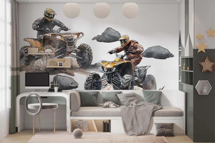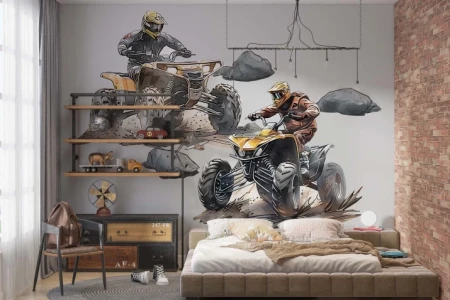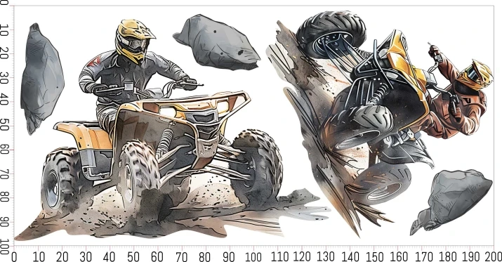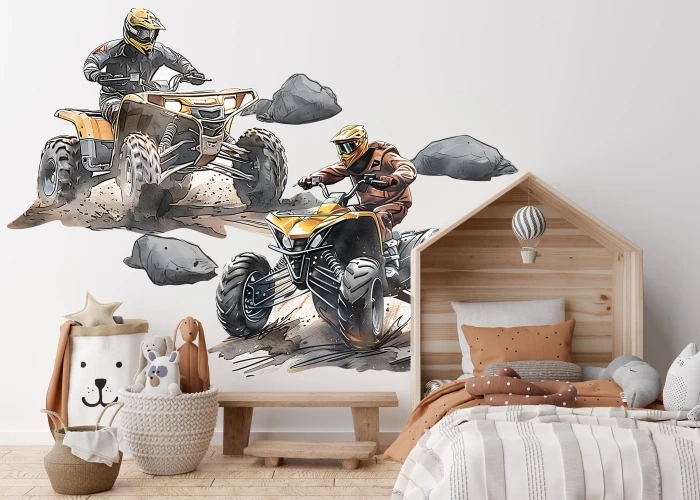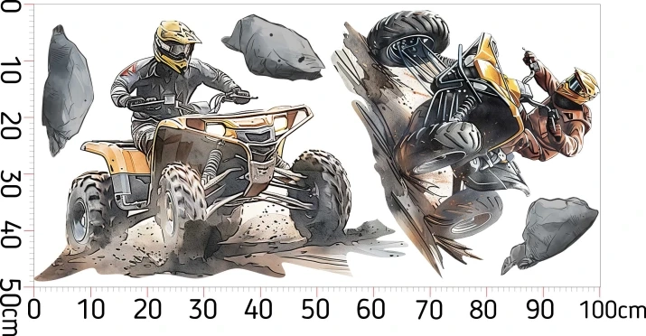 Ta naklejka to istny zastrzyk adrenaliny dla małego rajdowca! Dzieciaki oszaleją na widok pędzących quadów. Wzór wyróżnia się bogatą kolorystyką i motywami sportów ekstremalnych.