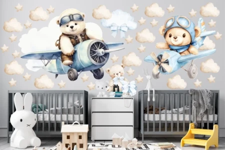Naklejki na ścianę | naklejka misie, samoloty