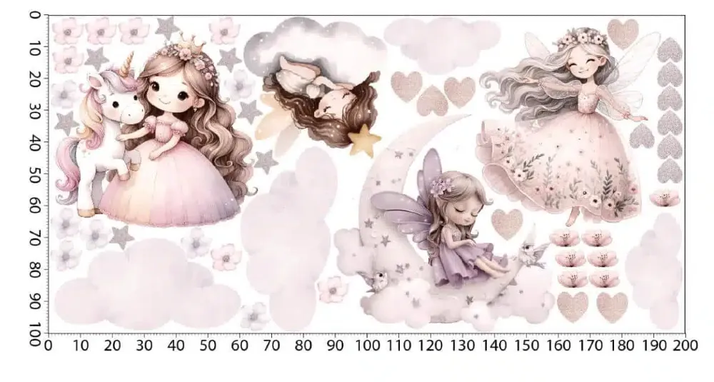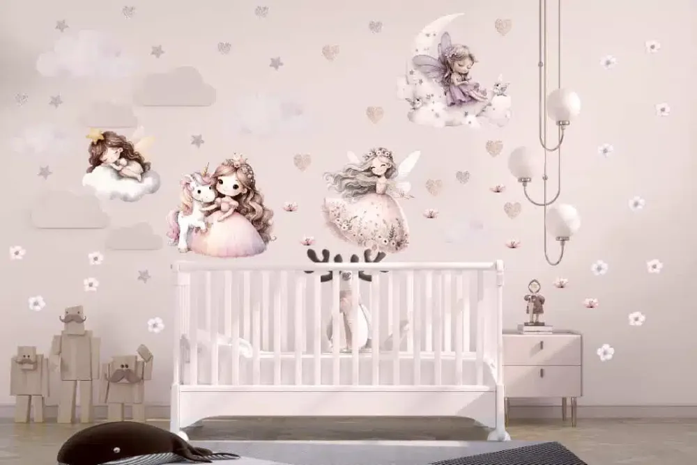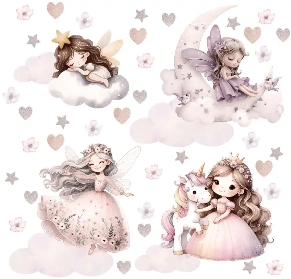 Stwórz w pokoju córeczki krainę, o której marzy każda mała marzycielka. Nasz zestaw to urocze wróżki śpiące na chmurkach, baletnica i najprawdziwszy jednorożec.Idealne nad łóżeczko, by przywoływać tylko dobre sny. Bezpieczna, matowa folia i zero problemów z naklejaniem!