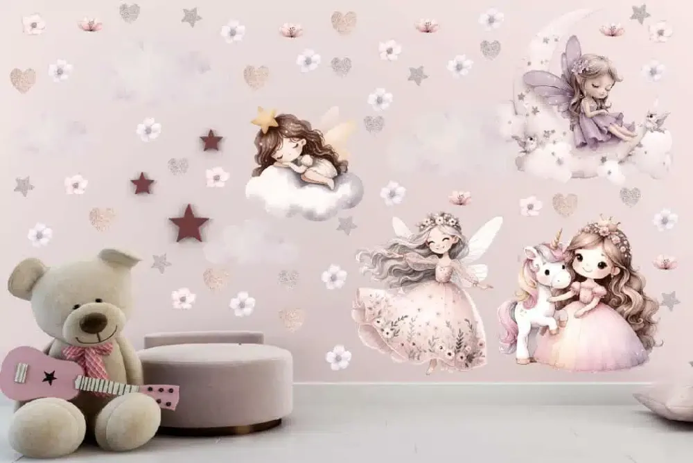 Szukasz dekoracji, która zmieni zwykły pokój w królewską sypialnię wróżek? Nasz zestaw naklejek to nie są zwykłe "nalepki" – to grafiki zaprojektowane tak, by wyglądały jak subtelne ilustracje z najpiękniejszej baśni. Mają ten unikalny, akwarelowy styl z delikatnymi cieniowaniami, dzięki czemu ściana wygląda, jakby wyszła spod pędzla artysty.