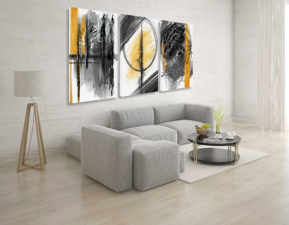 Nowoczesny zestaw obrazów tryptyk na płótnie canvas abstrakcja żółty