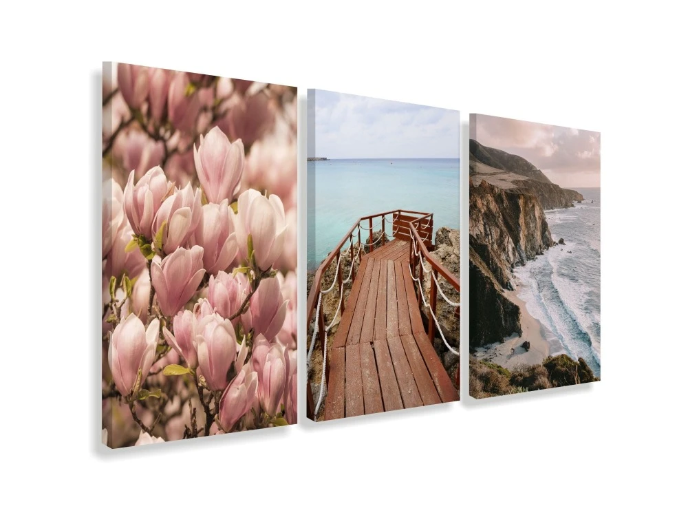 Nowoczesny zestaw obrazów tryptyk na płótnie canvas natura magnolia kwiaty