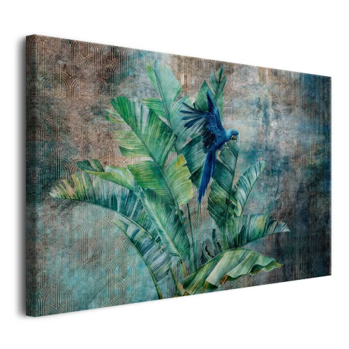 Obraz Egzotyczny z Papugą i Liśćmi Palm – Elegancja w Stylu Urban Jungle