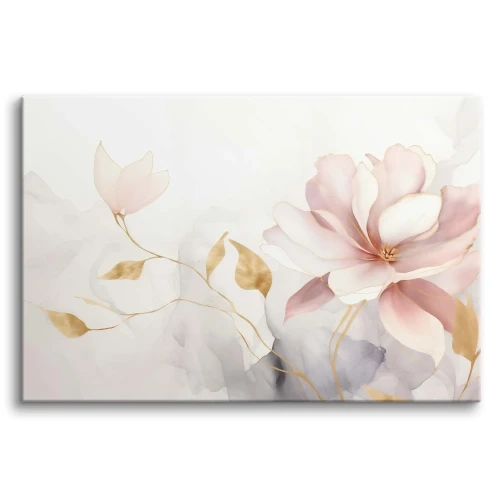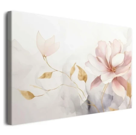 Przedstawia on delikatne, rozkwitające różowe kwiaty, muśnięte luksusowymi złotymi akcentami, tworząc kompozycję pełną romantyzmu i blasku. Ten stylowy wydruk na płótnie to doskonały sposób, aby wnieść do Twojego domu atmosferę luksusu i subtelnej gracji, idealnie komponując się zarówno w przytulnej sypialni, jak i reprezentacyjnym salonie.