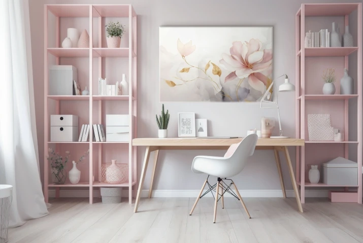 Dominujące na tym obrazie miękkie odcienie różu symbolizują delikatność i romantyzm, natomiast połyskujące złote liście i detale dodają mu wyrafinowanego charakteru i nuty glamour. To harmonijne połączenie kolorystyczne sprawia, że obraz staje się wyjątkowym elementem dekoracyjnym, który z łatwością dopasujesz do różnorodnych aranżacji wnętrz, od klasycznych po nowoczesne.