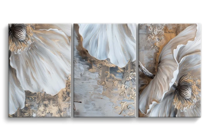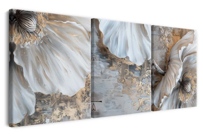 Obraz na płótnie canvas | tryptyk kwiaty beż i złoto