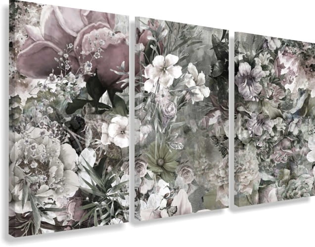 Obraz na płótnie canvas tryptyk kwiaty vintage