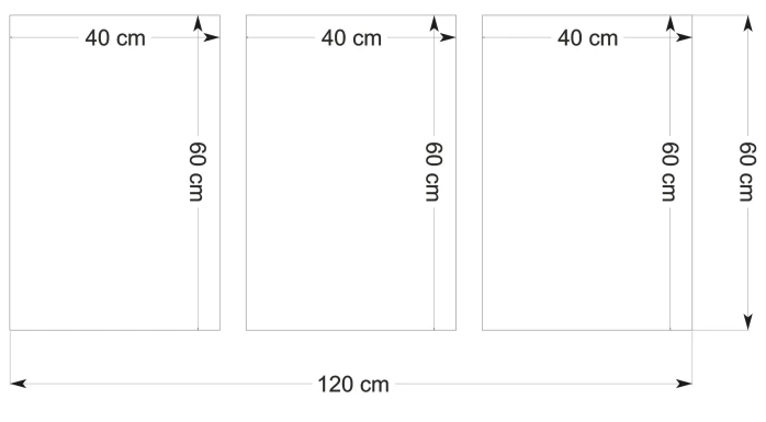 - rozmiary: całkowity rozmiar zestawu 60x120cm: 3 szt o wymiarach 40 cm x 60 cm lub całkowity rozmiar zestawu 90x180cm: 3 szt o wymiarach 60 cm x 90 cm