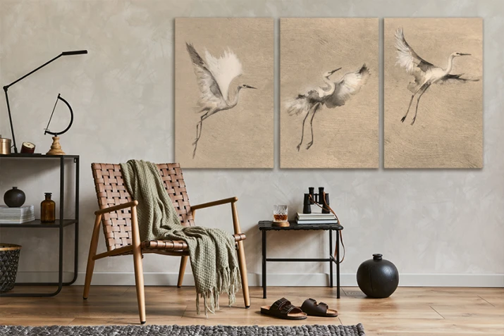 Tryptyk, 3 obrazy na płótnie canvas, żurawie