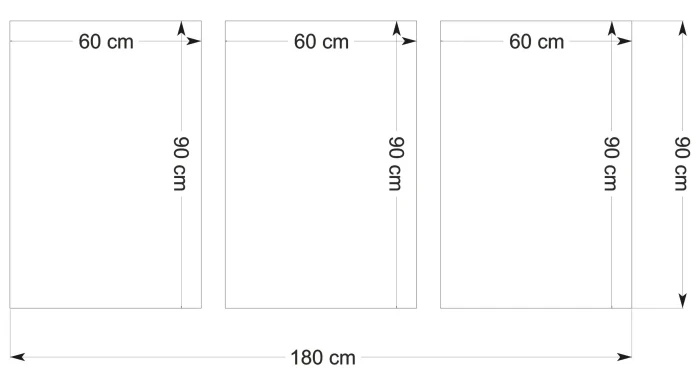 - rozmiary: całkowity rozmiar zestawu 60x120cm: 3 szt o wymiarach 40 cm x 60 cm lub całkowity rozmiar zestawu 90x180cm: 3 szt o wymiarach 60 cm x 90 cm