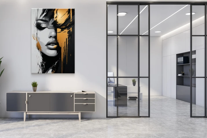 Sercem tej kolekcji są obrazy z motywem twarzy kobiety, gdzie złote detale – niczym płynne złoto – podkreślają emocje i dodają wnętrzu tajemniczości. To idealny wybór dla osób szukających dużych obrazów do salonu, które mają przyciągać wzrok i stanowić centralny punkt dekoracyjny.