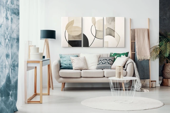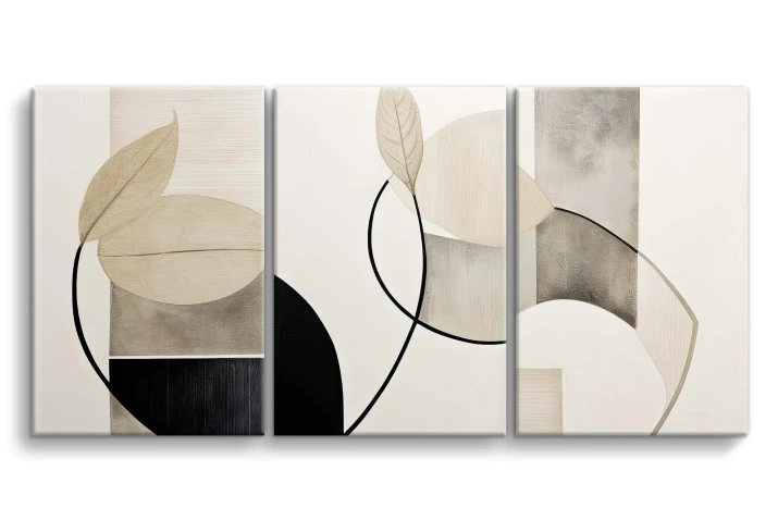 To eleganckie połączenie natury i abstrakcji sprawia, że ten tryptyk jest idealnym wyborem do nowoczesnych, minimalistycznych oraz skandynawskich wnętrz. Jego neutralna paleta barw doskonale komponuje się z różnymi kolorami ścian i mebli, dodając pomieszczeniu spokoju, wyrafinowania i artystycznego charakteru.