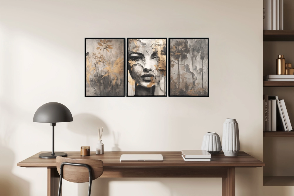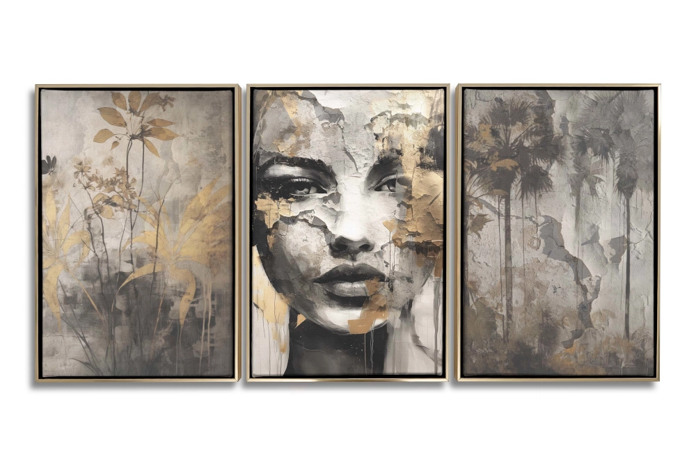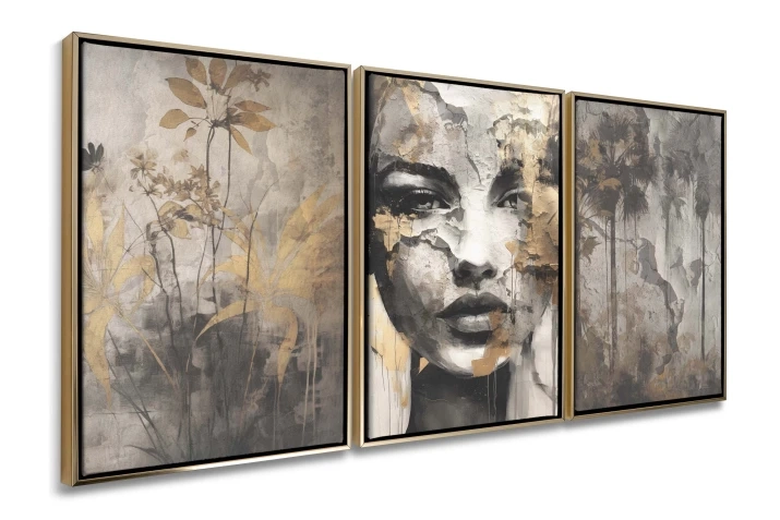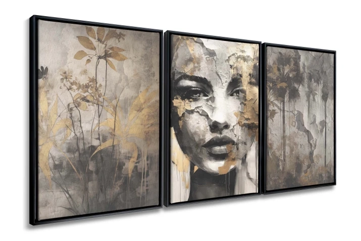 Zanurz się w świecie subtelnej elegancji i intrygującego mistycyzmu z tym niezwykłym tryptykiem. Składający się z trzech obrazów, zestaw ten, to kwintesencja nowoczesnego designu, który odmieni każde wnętrze.