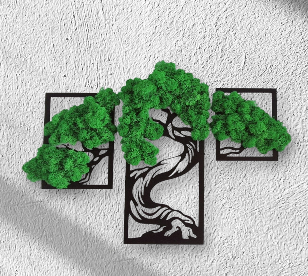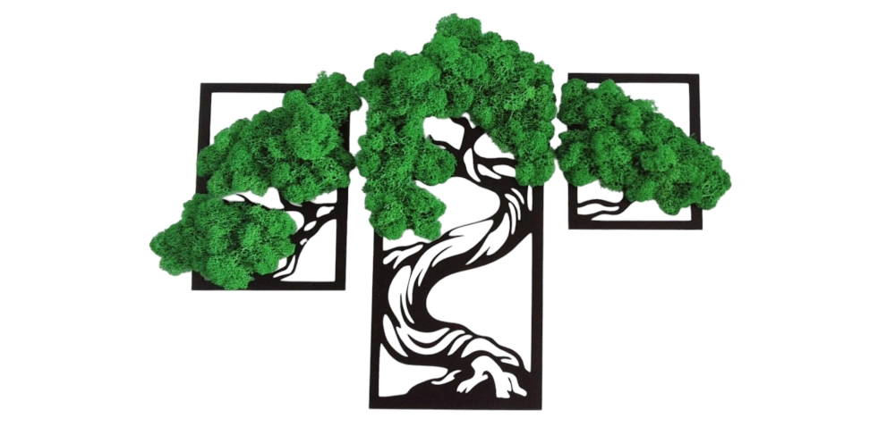 Ten tryptyk z chrobotkiem to idealne rozwiązanie dla osób ceniących sobie naturalne akcenty w wystroju wnętrz, ale nie mają czasu na regularną pielęgnację roślin. Jego nowoczesny design i naturalny materiał stworzą w każdym pomieszczeniu unikalną i kojącą atmosferę.
