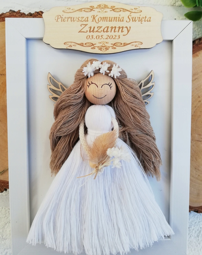 Aniołek rękodzieło - pamiątka komunii, chrztu- ręcznie wykonany