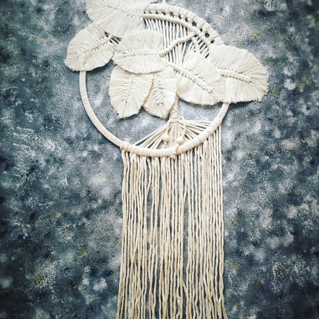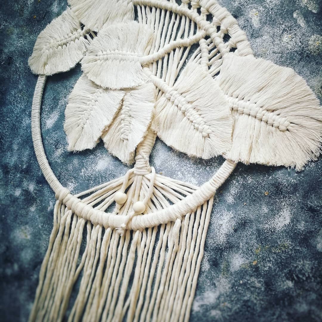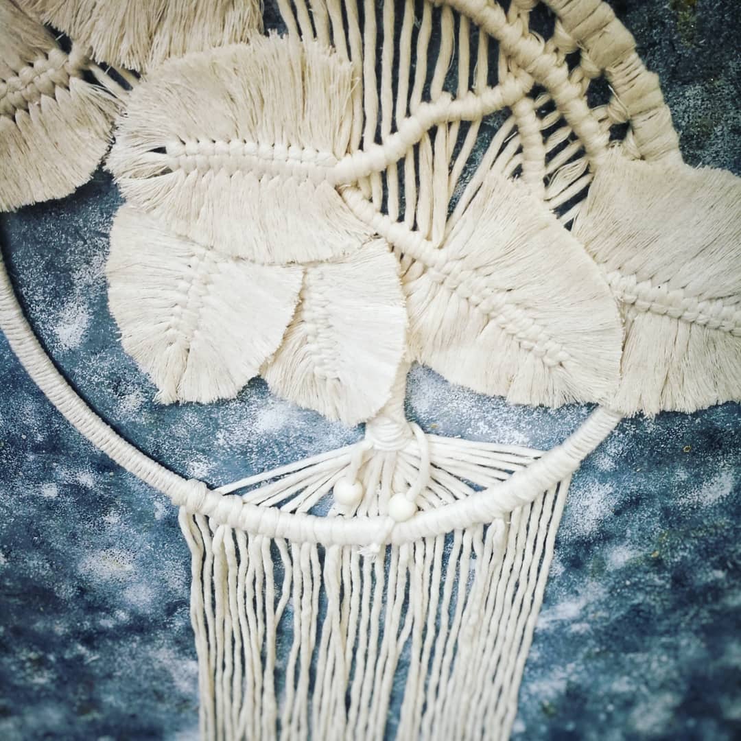 Piękny Łapacz snów makrama drzewo liście rękodzieło boho ecru