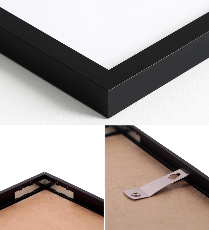 - wybierając plakat z ramką, otrzymujesz prostą, lekką ramkę, wykonaną z tworzywa. Z przodu będzie bezbarwna plexi, tył ramki to płyta HDF o grubości 3mm, w zależności od wielkości plakatu i ramy, na tyły montujemy mały lub duży wieszak