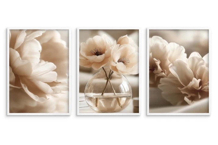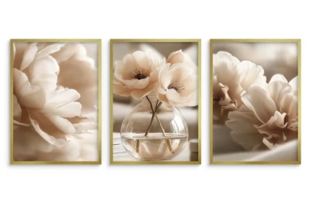 Ten tryptyk to idealna propozycja dla każdego, kto ceni sobie spokój i subtelne piękno, które nie przytłacza. Jeśli szukasz dekoracji, która wniesie do wnętrza ulotny urok i poczucie lekkości, to te plakaty są właśnie dla Ciebie. Są perfekcyjne dla osób, które pragną stworzyć przestrzeń pełną harmonii, gdzie zmysły mogą odpocząć od nadmiaru bodźców. Ten zestaw przypadnie do gustu miłośnikom minimalistycznego designu i tych, którzy w sztuce szukają inspiracji do oddechu. To prawdziwa gratka dla każdego, kto marzy o azylu spokoju i wizualnej ciszy w swoim otoczeniu.
