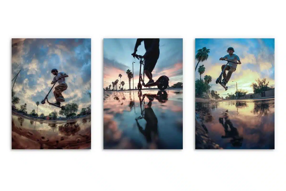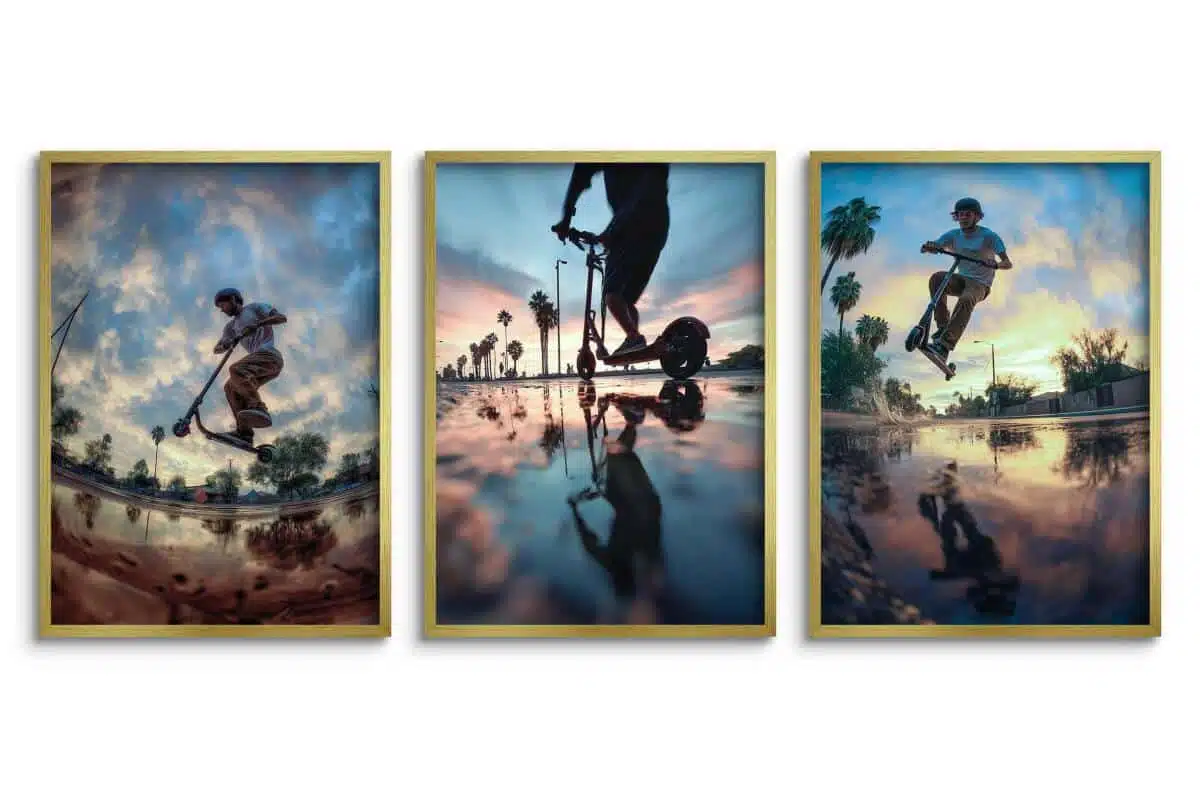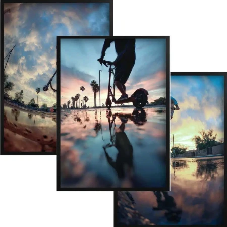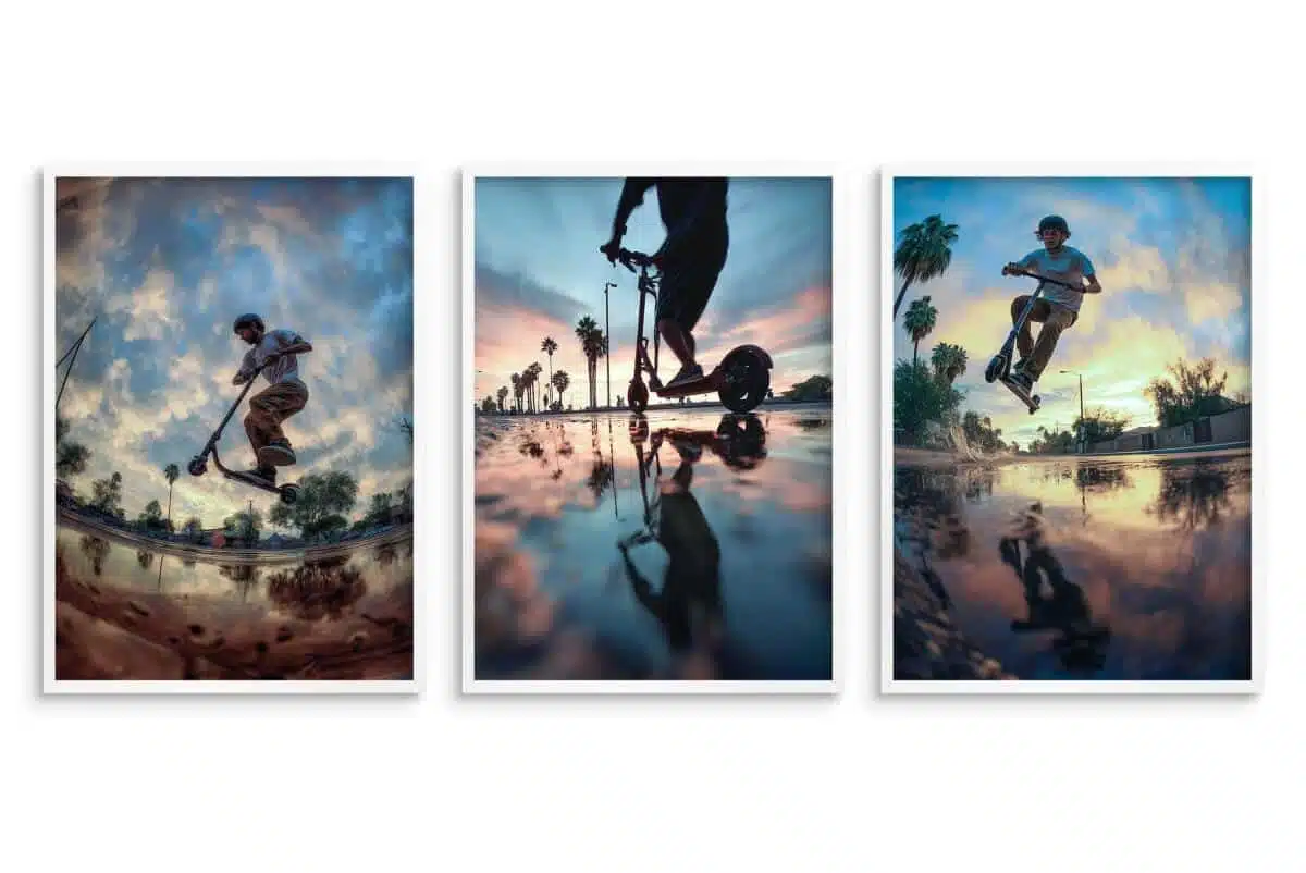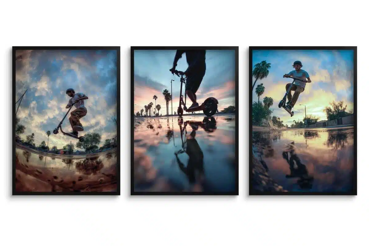 Szukasz dekoracji, która wyrazi pasję, energię i dynamikę? Ten tryptyk to idealny wybór dla każdego nastolatka ceniącego sport, wolność i miejską kulturę. To nie są zwykłe plakaty – to zamrożone w kadrze spektakularne akrobacje.