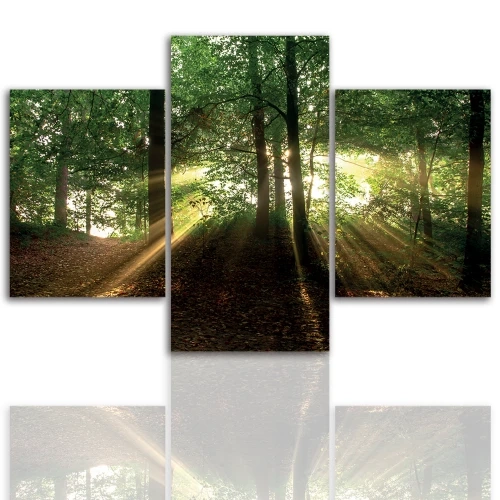Promienie Słońca w Lesie |Tryptyk | Obraz na płótnie