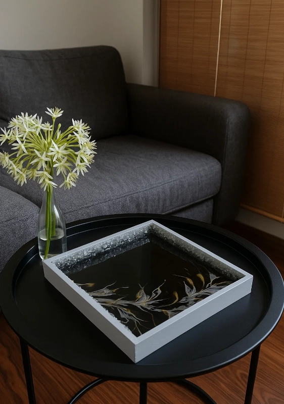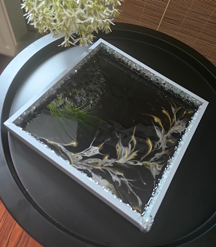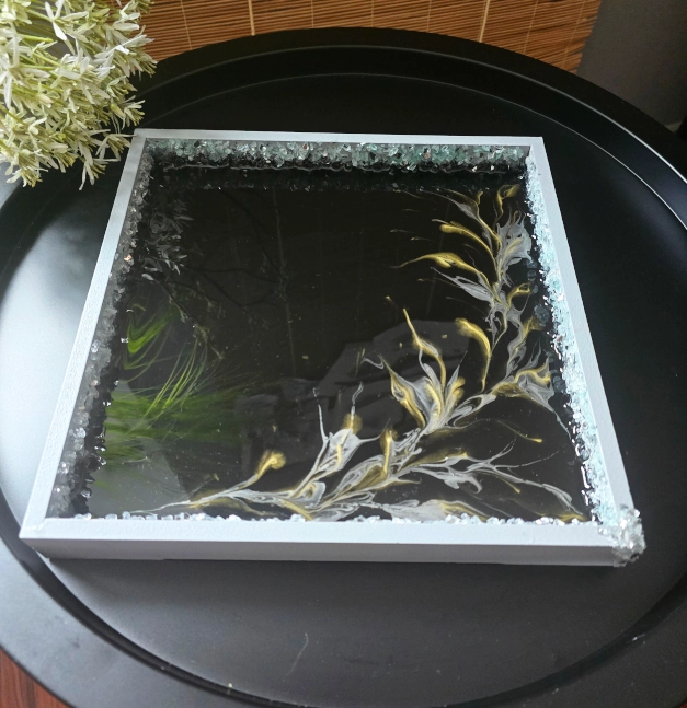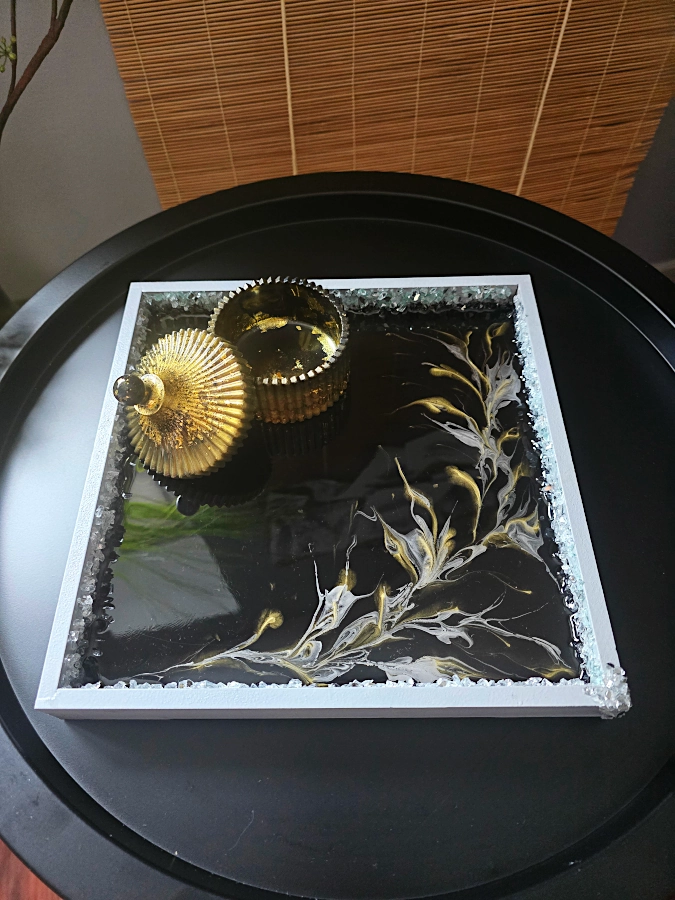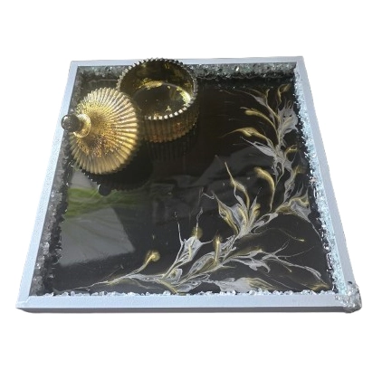 Ekskluzywna Taca Dekoracyjna z Żywicą i Szklanym Kruszywem – 25x25 cm