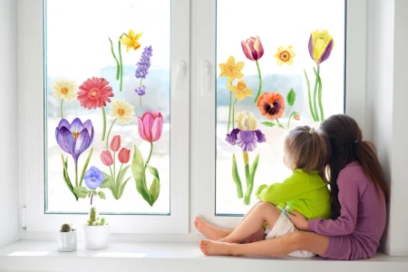 Naklejki te idealnie nadają się do dekoracji okien w domu, szczególnie w okresie wiosennym.