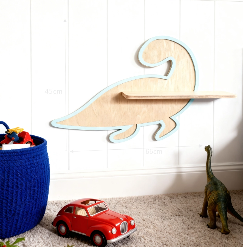 Dodaj lekkości i magii wnętrzu Twojej pociechy. Nasza półka z dinozaurem to nie tylko praktyczny mebel, ale przede wszystkim unikalna dekoracja, która przyciąga wzrok i nadaje pokojowi artystyczny charakter. Idealna na ulubione zdjęcie, pierwszego pluszaka lub małą lampkę, która rozświetli wieczorne rytuały.