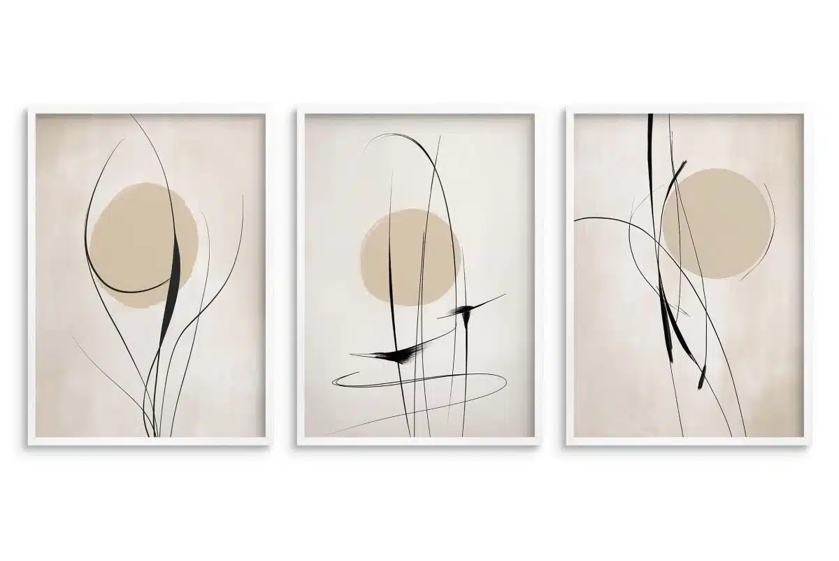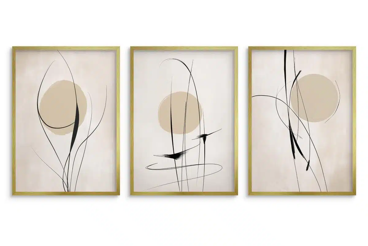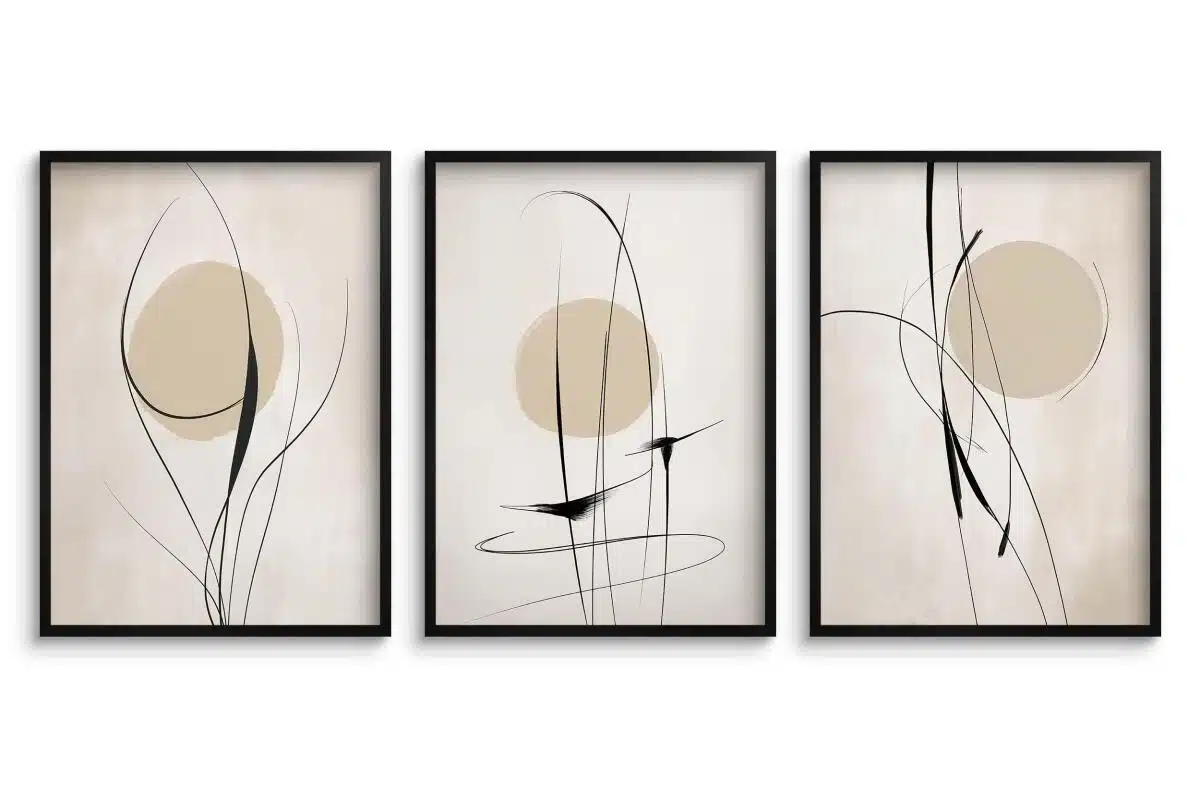 Zestaw plakatów Zen Garden | Abstrakcyjny tryptyk z motywem słońca