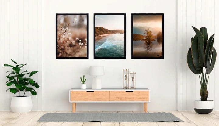 Wybierając zestaw plakatów z ramkami, otrzymujesz proste, lekkie ramki, wykonane z tworzywa.