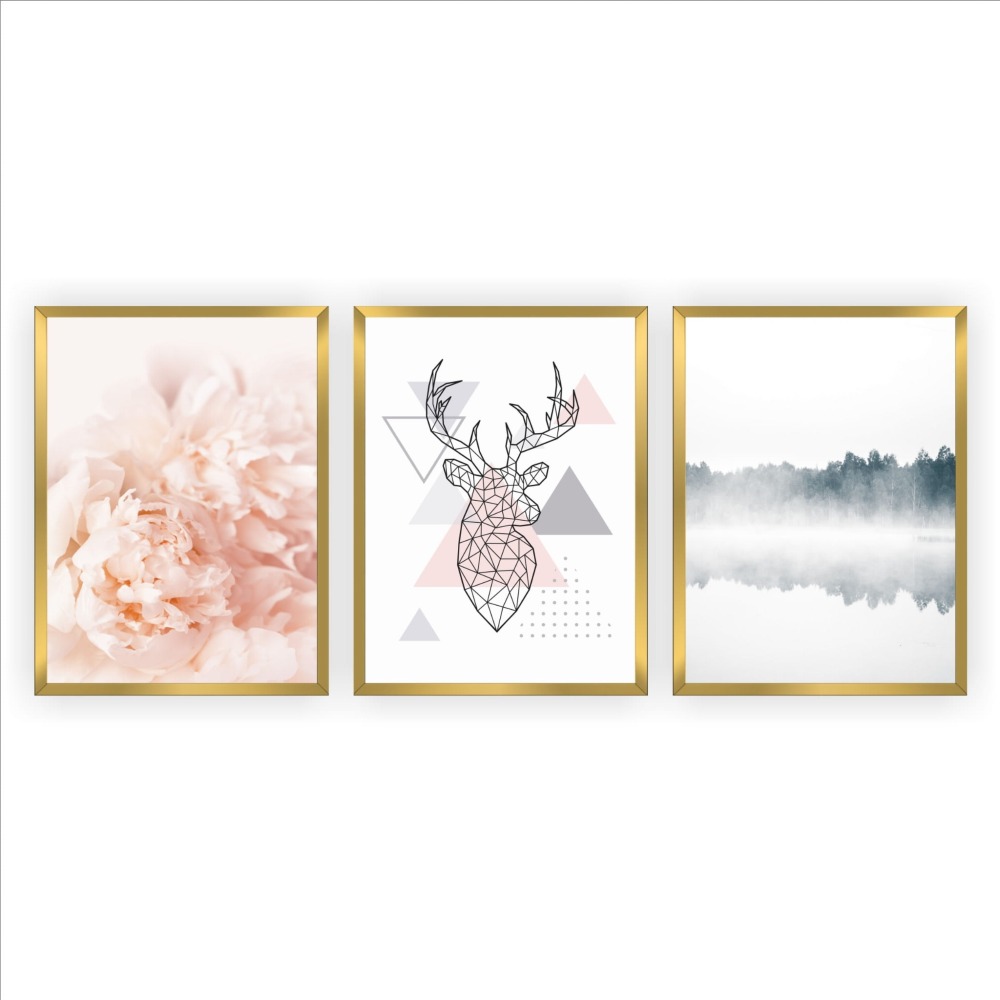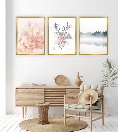 Zestaw plakatów 3szt - kwiaty, jeleń...