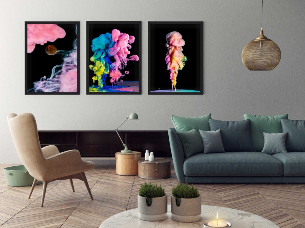 Wybierając zestaw plakatów z ramkami, otrzymujesz proste, lekkie ramki, wykonane z tworzywa.