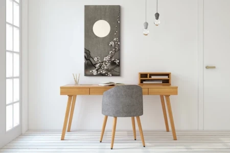 Obraz Ohara Koson reprodukcja Kwitnący kwiat śliwki przy pełni księżyca