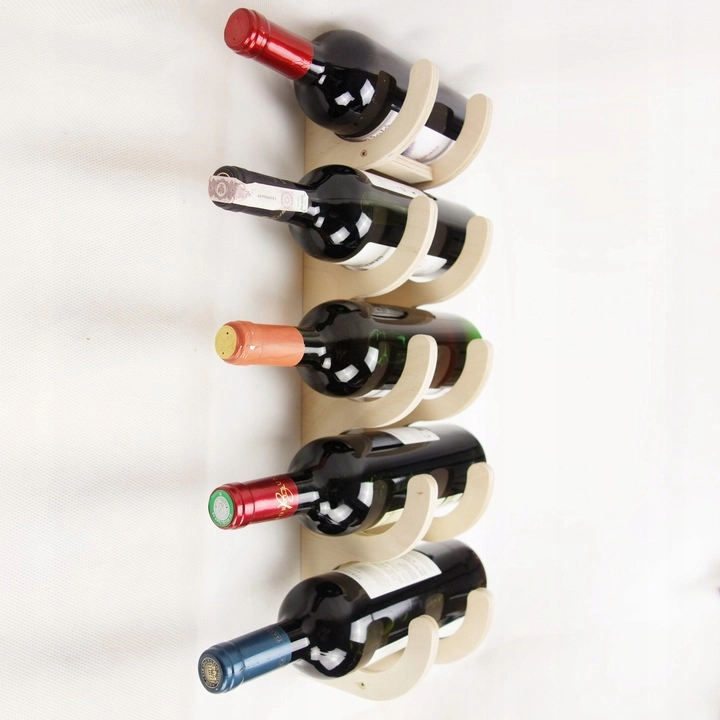 Wieszak na butelki wina pozwala na efektywne wykorzystanie przestrzeni, umożliwiając przechowywanie pięciu butelek w jednym miejscu. Zastosowanie odpowiedniej grubości materiału podnosi jego walory estetyczne oraz praktyczne.