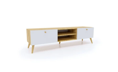 Szafka RTV dąb/biały - drewniane nogi